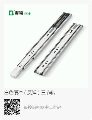 雪宝4515白色缓冲(反弹)三节轨:静默守护温柔时光 滑轨抽屉在现代家具中是必不可少的组成部分,而在整个抽屉的设计中,小小的滑轨对整个抽屉的质量可有着举足轻重的影响,那些大大小小的抽屉能否自由顺滑地推拉、承重如何,全靠滑轨的支撑。雪宝4515缓冲(...