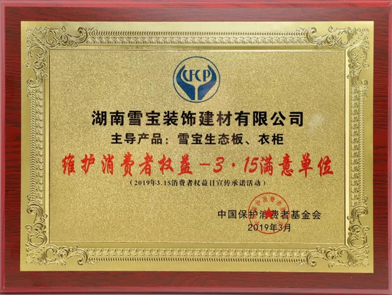 - 生态板十大名牌雪宝荣获2019维护消费者权益-3.15满意品牌称号