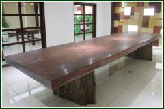 在板材十大品牌-雪宝国内营销中心 木文化室 千年红木长4.95*宽1.30*高0.12(米) 古夷苏木,俗称巴西花梨(巴花)又称红檀,产于非洲加蓬国,原始森林高山优质刨切材。 桌面离地距离0.8米该产品经过蒸汽,热风烘干处理28天,绝不变形,含水率在12%,绝不...