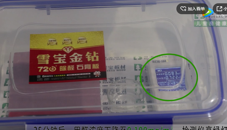 雪宝金钻720度除醛石膏板-分解甲醛净化空气测试...