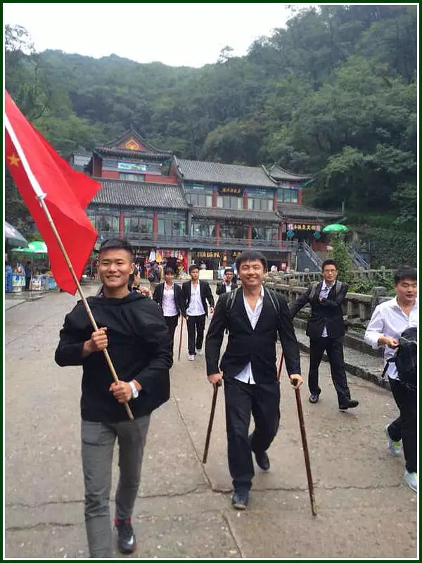 华北营销中心的家人们手举国旗,昂首向山顶挺进。
