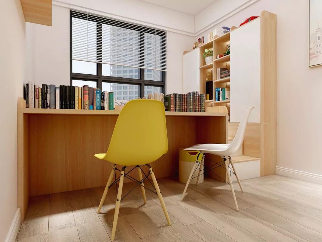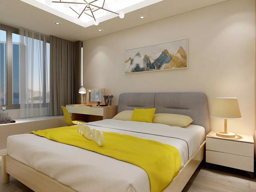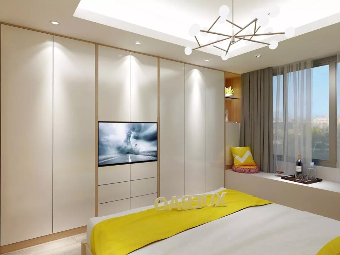 主卧柜体满墙到顶设计,空间利用追求极致。休息区、储物区、梳妆区、休闲区、视听区五大功能分区,在空间展现淋漓尽致,完美满足生活需求。书桌台巧妙设计梳妆收纳格,功能不要太强大哦。同时,选用明亮色系柠檬搭配,让空间顿生活泼俏皮气息。