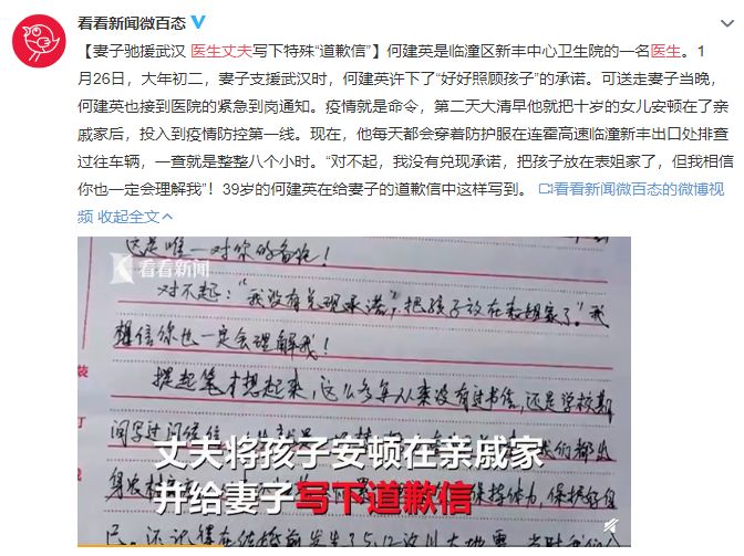 她瞒着家人驰援武汉,丈夫直到看见别人发的照片,才知道她已经出发。两人在电话里大吵一架,冷静之后,同为军人的丈夫给彭渝发了一条微信