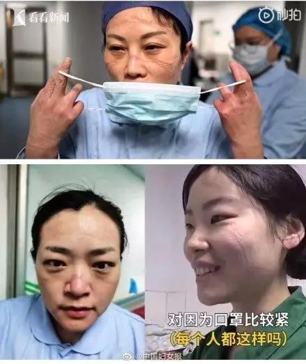 长时间佩戴口罩,医生脸上满是印记