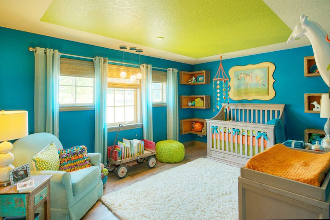 儿童房的颜色选择也是有讲究的。家具颜色要清晰且易分辨的亚光纯色,避免鲜艳混杂及过分高亮的颜色刺激引起孩子们的视觉疲劳。