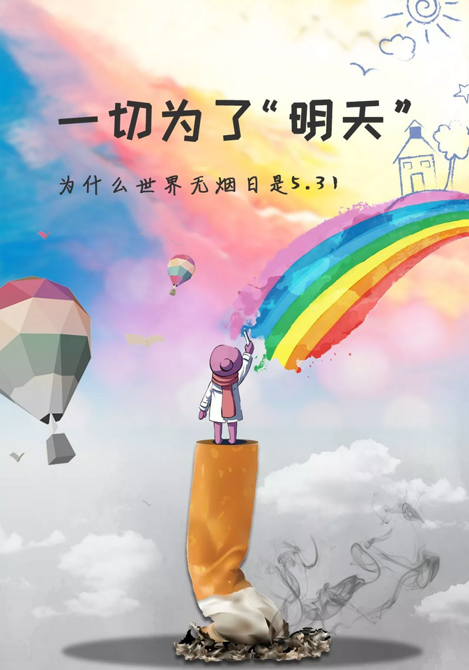 “世界无烟日(World No Tobacco Day),是世界卫生组织在1987年创立的,一开始的“世界无烟日”是4月7日,但从1989年开始,世界无烟日改为每年的5月31日,正是因为第二天是国际儿童节,希望下一代免受烟草危害。一个小小的改动,只为了提醒我们,一切为了“明天”,别让下一代成为“烟二代”。