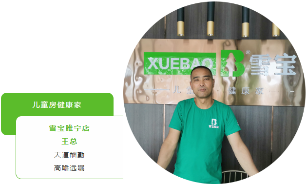同时,紧跟雪宝总公司发展的步伐,在睢宁地区大力推广雪宝的高品质系列产品,继续扩大团队,拓宽销售渠道,将“儿童房健康板”的环保理念深入人心,真正带给广大消费者最优质的服务最环保的产品!