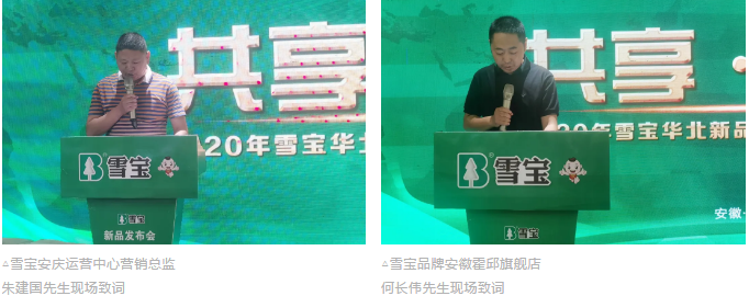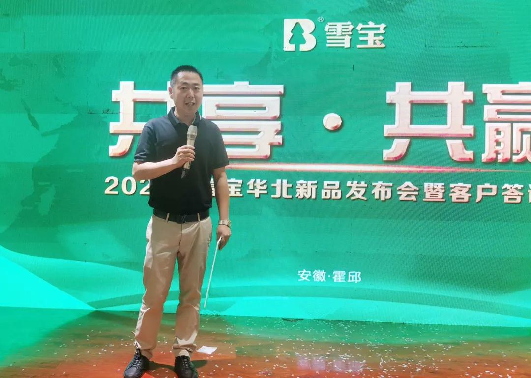 在雪宝品牌安庆运营中心营销总监朱建国先生和雪宝品牌安徽霍邱旗舰店何长伟先生以及霍邱区域雪宝家人们的共同参与和见证下,雪宝品牌安徽霍邱新品发布会暨客户答谢会圆满举办。二人相继在会上致词,表示将不遗余力深区域市场,加大力度实现多渠道资源整合及终端运营知识技能强化,抢占市场共享成果,争创佳绩共赢未来。