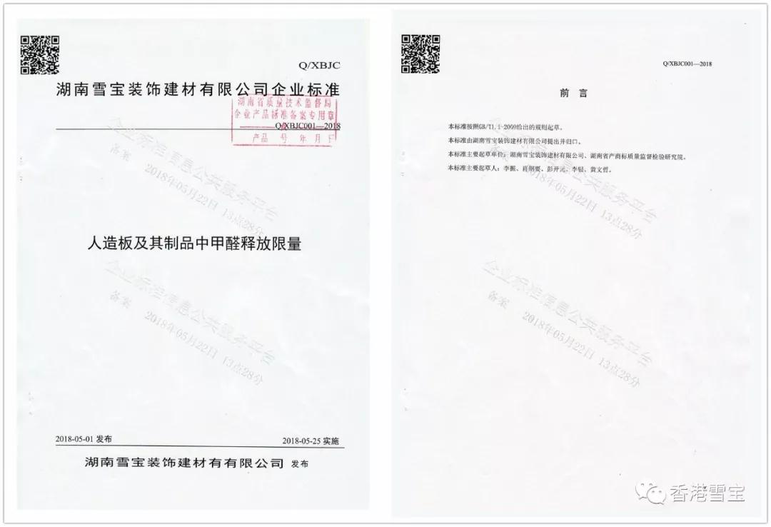 同时联合权威机构制定雪宝企业产品标准Q/XBJC001-2018,在此标准中确定品牌E0级、无醛级的产品标准,在甲醛释放数值上明显优于国家标准,更环保更健康!