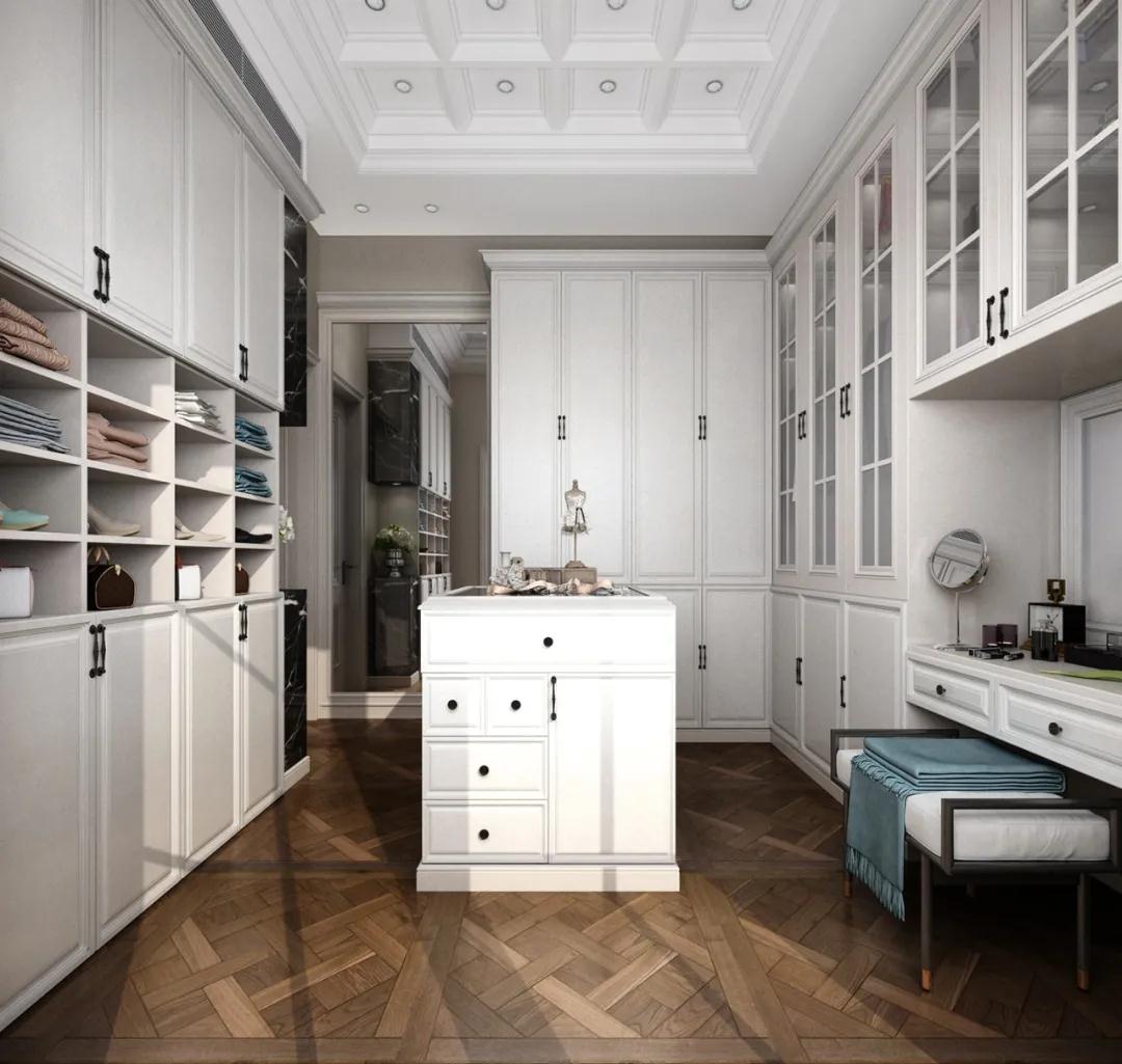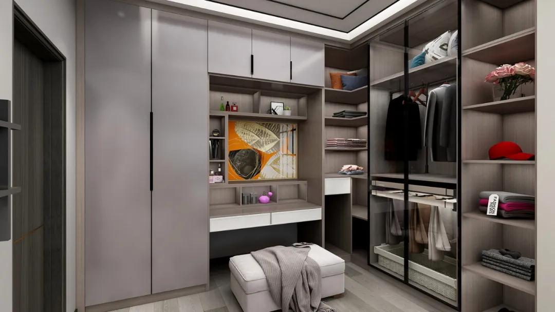 展示区:展示区属于衣柜的画龙点金之处,可展示主人穿衣和生活品味。展示区可以是开放式的,也能是玻璃透明式的,开放式区域可以储放收藏品或钥匙钱包等,便于伸手取物。