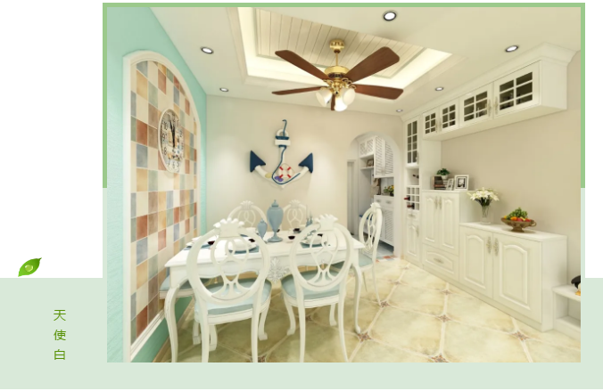 空间简洁大方、层次分明,不同深度的和色调堆叠在一起、或是加入其他亮色调及元素,都能碰撞出不同凡响的高级感,而天使白最为适合!