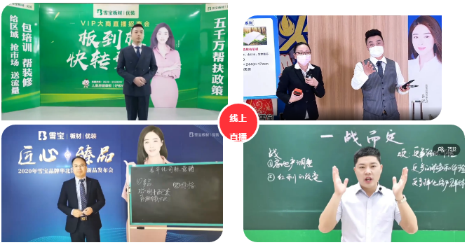 线上直播活动 : 紧跟时代发展趋势,陆续展开“工厂抢购会、VIP大商区域招商、匠心臻品新品发布会、营销战役规划大课”等线上直播活动,创行业之奇迹,领行业之高峰,成绩斐然!