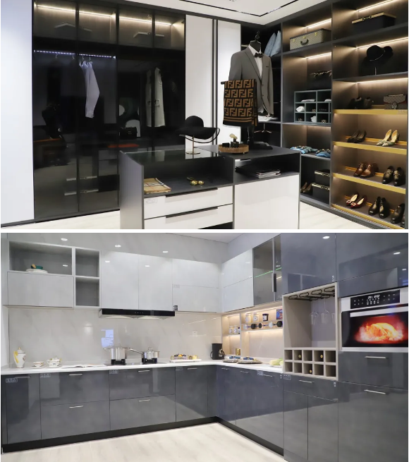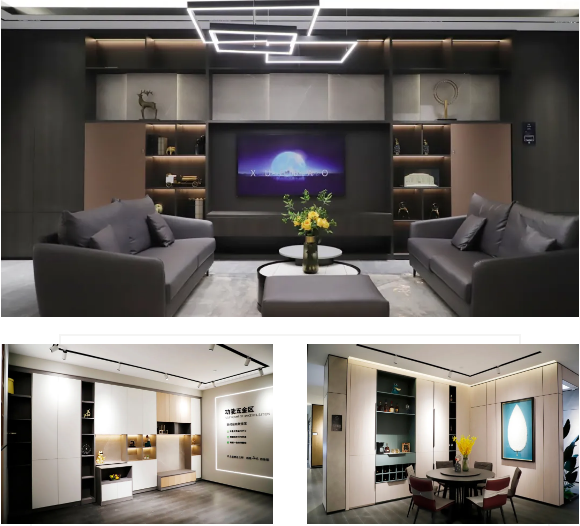 五金、地板、木门、移门、平开门、门板、生态板、门墙柜一体等系列产品悉数登场;客厅、儿童房、多功能房、衣帽间、卧室、入户柜、阳台柜、书房、榻榻米、橱柜等家居空间场景完美呈现;意式极简、现代轻奢、简欧、北欧、现代简约、新中式轻奢等风格惊艳亮相;