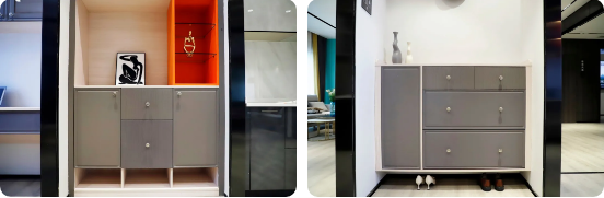 现代简约风格系列之榻榻米、入户柜、鞋柜等呈现,无论是板材花色搭配上还是点缀色的运用上都相得益彰,给人亲切的家居温馨感的同时又极具质感,完美的将品牌“健康·时尚·品质·品味”的产品理念极致体现。