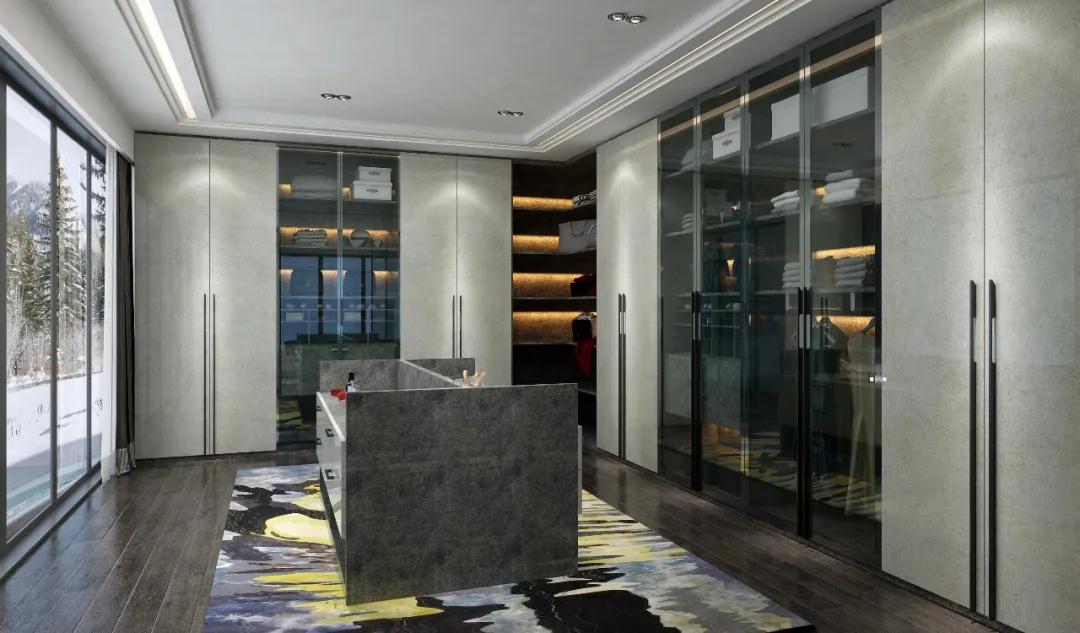 一门到顶柜门搭配极简黑色长拉手,进到家就像走进高档会所,让人退下一天的疲惫和“伪装”,感受即高端又温暖的家, 这才是衣帽间的幸福感来源。