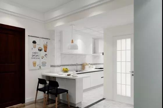 △ 厨房与客厅用吧台做隔断,不但可以帮助厨房分区,还能丰富厨房的功能,增强实用性。空间不大的厨房,吧台还能充当临时备餐区和餐桌,一举两得。