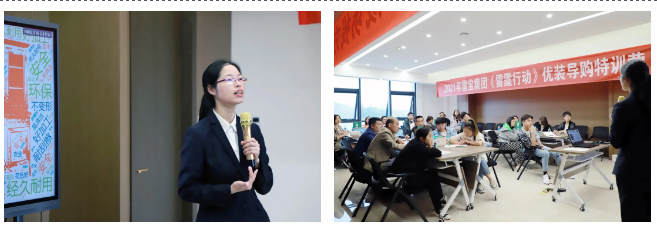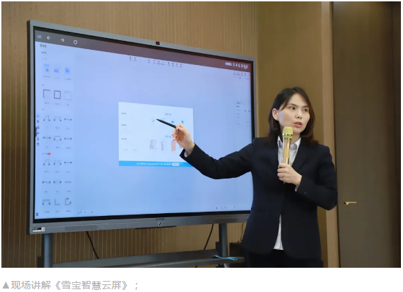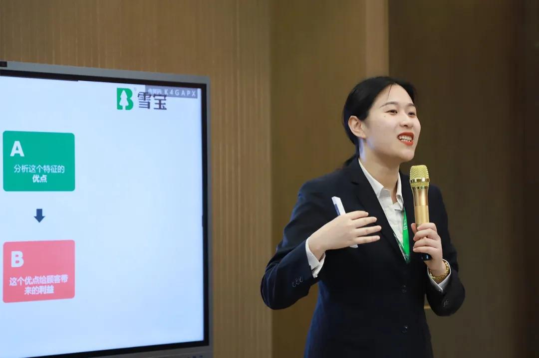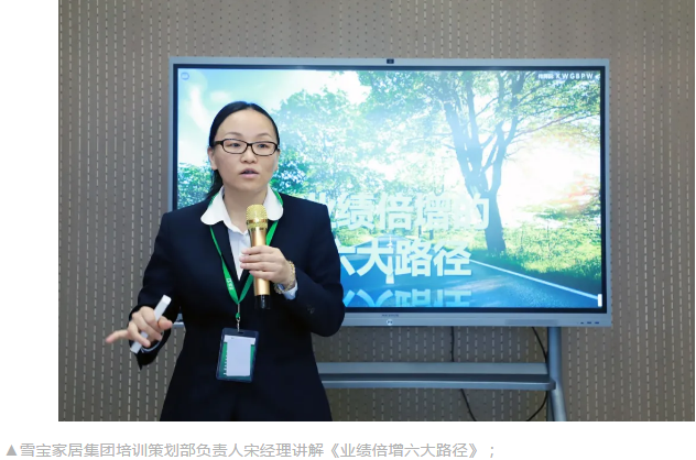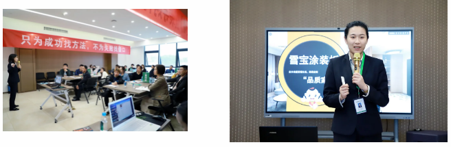 雪宝集团培训讲师谢佳妤老师讲解《抗菌防霉板》、《涂装板》、《雪宝五金》、《雪宝FABE销售法则》系列课程;