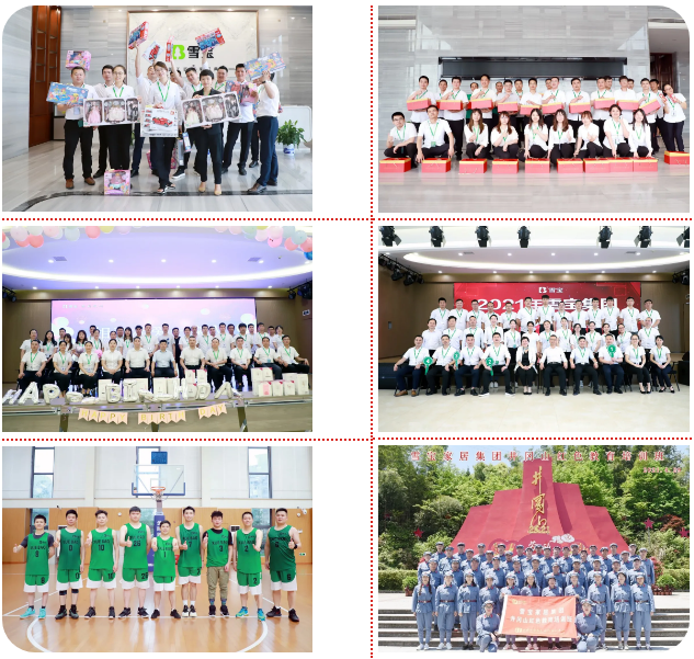 雪宝企业活动一览,如节假日福利发放、员工生日会、培训学习会、篮球赛、井冈山之旅等。在企业稳健发展的过程中,雪宝人自始至终将企业文化贯彻落实并精进于日常工作生活中,并孜孜不倦持续践行;