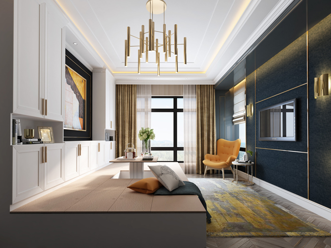 客厅装榻榻米,用榻榻米代替沙发+茶几的功能,榻榻米里还能承担客厅的收纳,是一个别致的做法。需要注意的是,安装榻榻米前底部留足够的透气孔,让底架内部空气流通。
