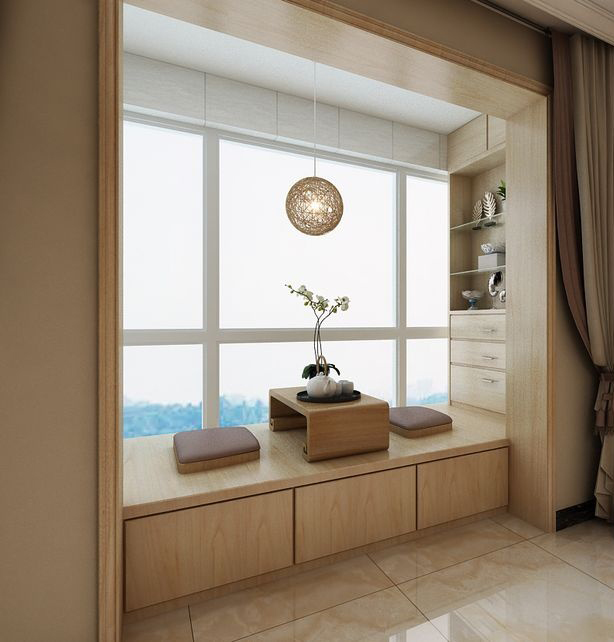 榻榻米可以利用高度差分割空间,内阳台就非常适合装榻榻米打造休息室。在榻榻米两侧留开放的置物空间,还很方便随手搁东西。