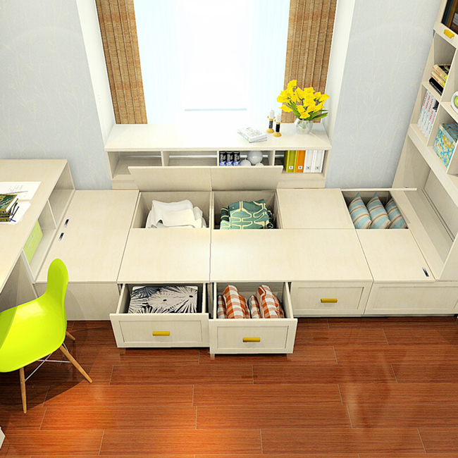 飘窗部分做榻榻米下面可以做很大的收纳空间