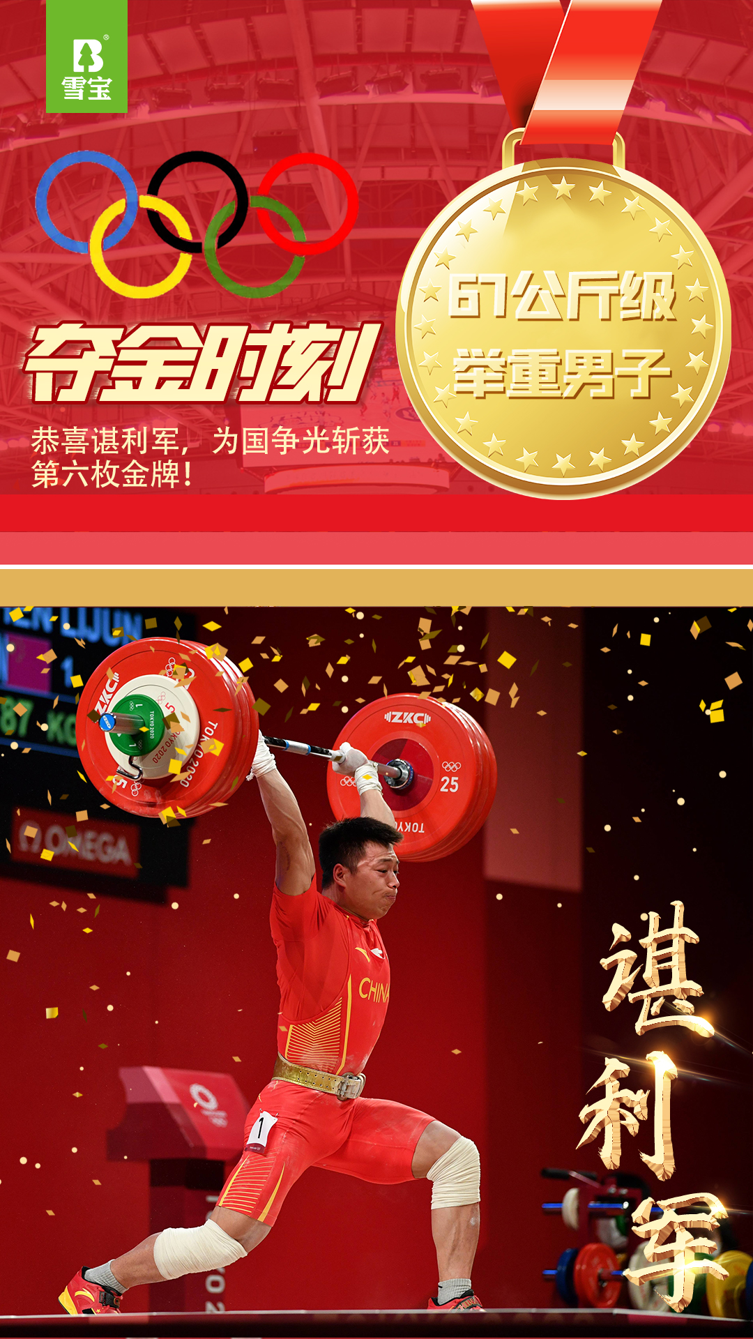 雪宝板材祝贺谌利军在2020东京奥运会67公斤级男子举重获得冠军!