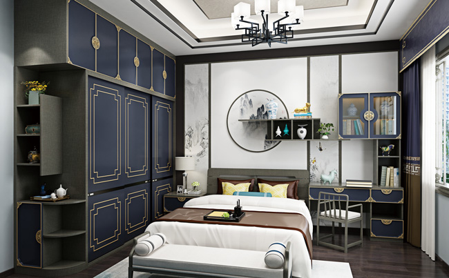 卧室里的床几乎占房间空间的60%,加上头柜、衣柜、过道等。地面可用性几乎为零。如果你想立竿见影,你只能在墙上做做文章。