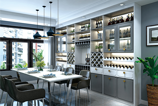 橱柜的设计不仅可以使整个房子的整体风格更加一致,而且可以使内部结构设计更加符合我们的实际使用习惯,从而更切实地解决厨房的储藏问题。在设计橱柜时,充分考虑用户的使用习惯,使橱柜的内部储物设计与厨房的移动线布置相辅相成。二者的合理结合,使储藏更符合用户的日常生活,方便使用后各种物品的取回,无形中保证了厨房的有序储藏。