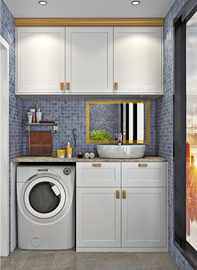 将阳台的储物空间一分为二的设计非常值得借鉴。一边是洗衣区,阳台柜有助于在阳台上存放各种散落的物品,您可以在上面摆放自己的花草,既美观又实用。