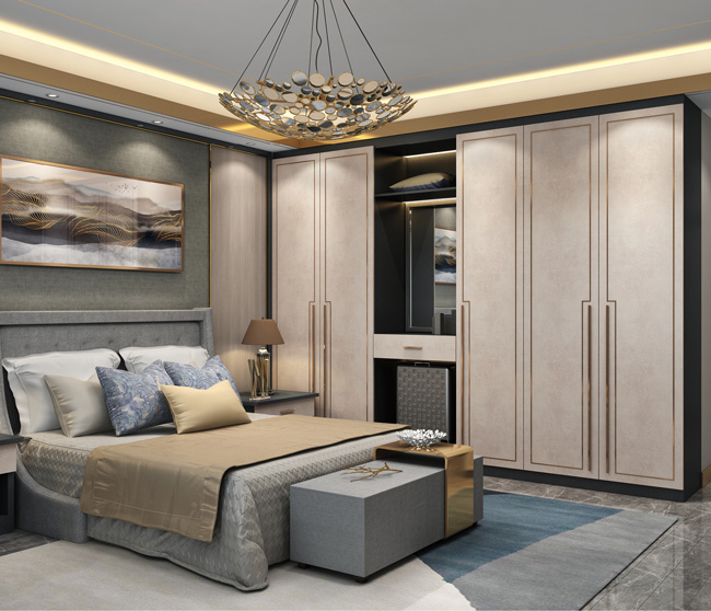 最后,一般定制衣柜尽量做通顶的设计,尽量把顶部与墙体相结合,也可以采用镶嵌在墙体里的方式,既能节省空间,还能保持整体空间的美观度和舒适性,一举多得。
