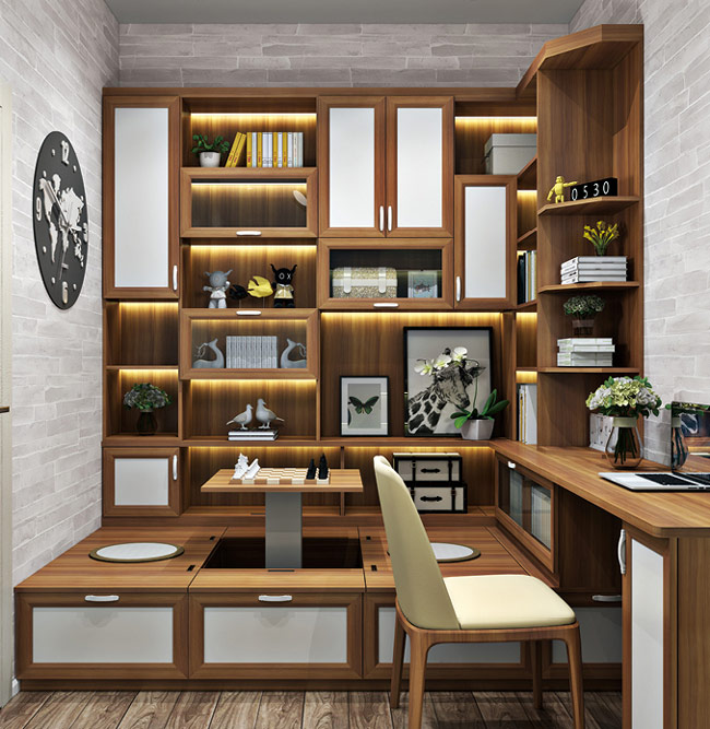 不想刻意留一个空间作为客卧,最恰当的方式就是有一个随时能让人留宿,但平常又能作为其他功能房使用。那就做一个多功能榻榻米吧,满足你平时休闲、储物、喝茶的功能,又能在客人到来之时,变身软床给他们歇息。