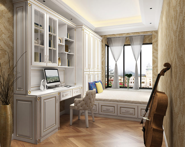如果有一间空余房间,不妨做成客房兼书房的设计方式,平时可以在此读书、写字,累了就躺在上面休憩,颇有“偷得浮生半日闲”的韵味。有新朋好友留宿也有地方住。