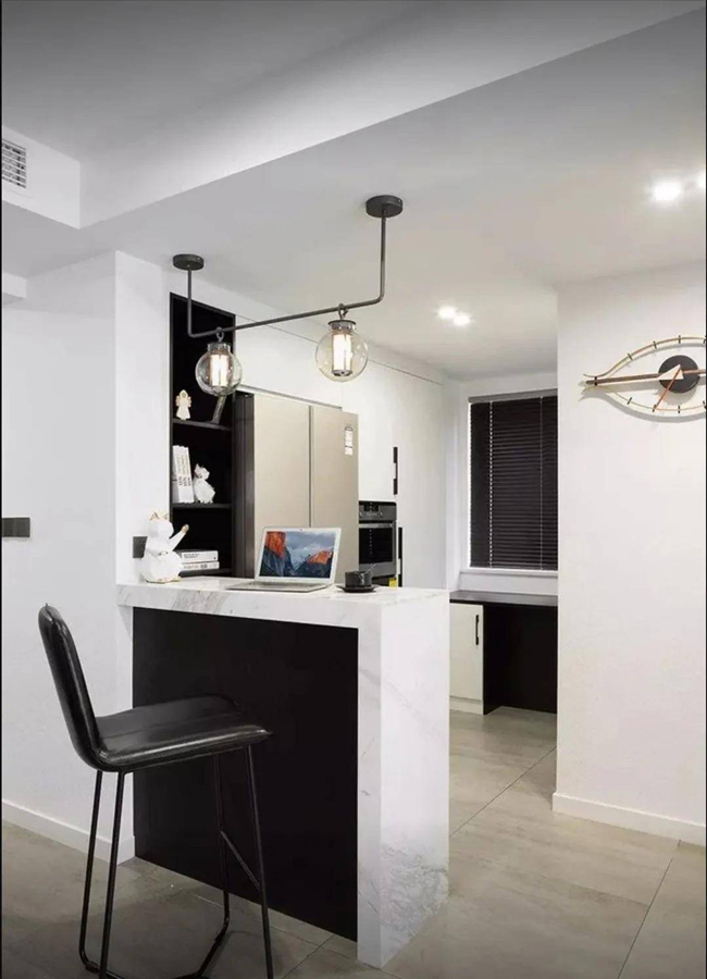 封锁厨房的混乱,增加酒吧的功能,并直接隔离开放感