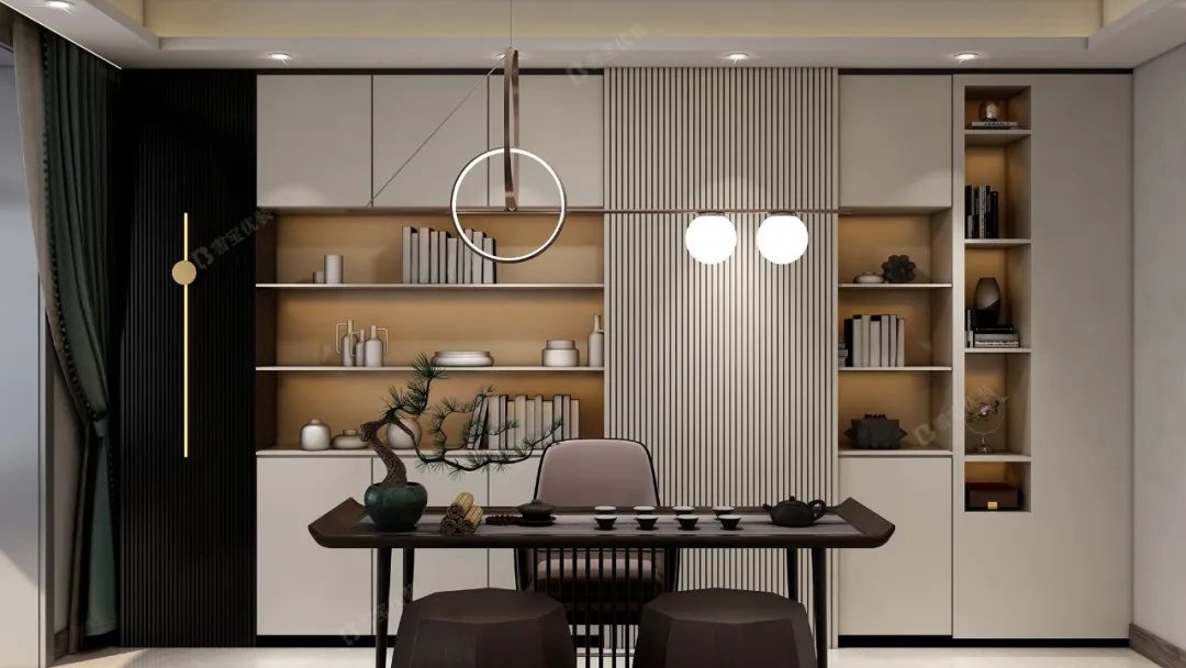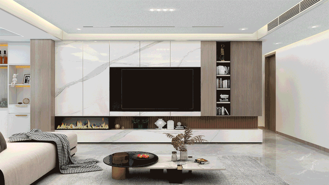 柜体开放区域,可放置工艺摆件,增添客厅艺术氛围,也可收纳日常小物,方便拿取。