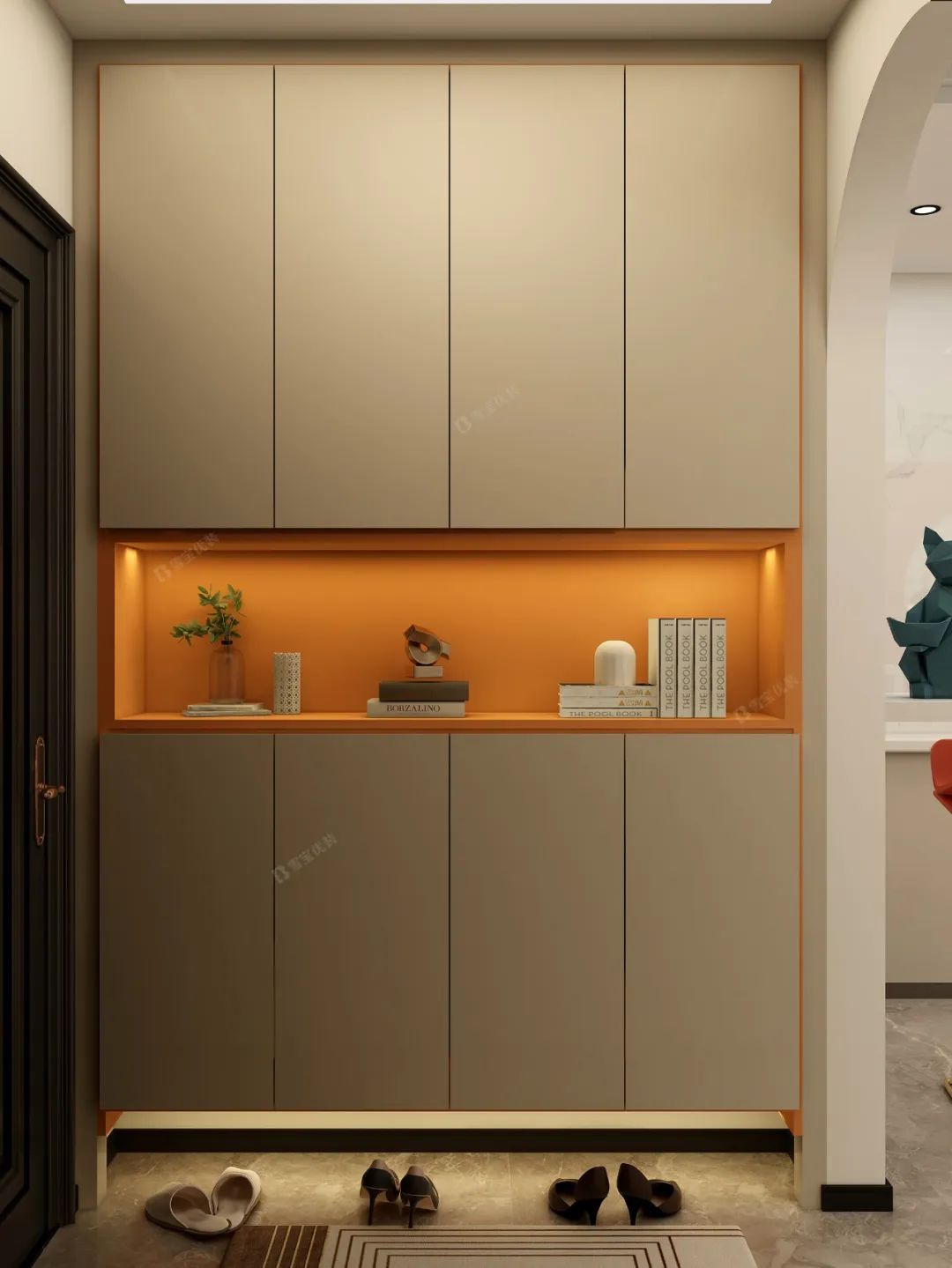 鞋柜内部配以装饰灯带点缀,免除了回家摸黑找开关的烦恼,还能让人一进门就感受到家的温暖。