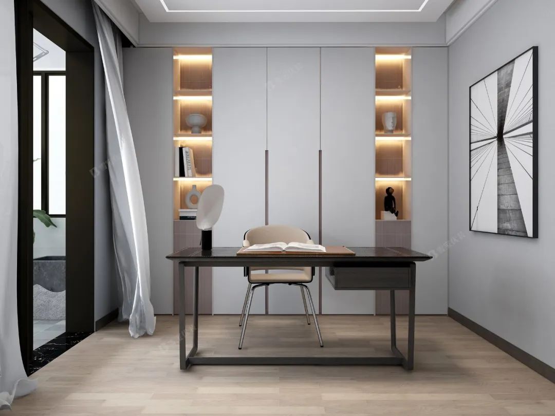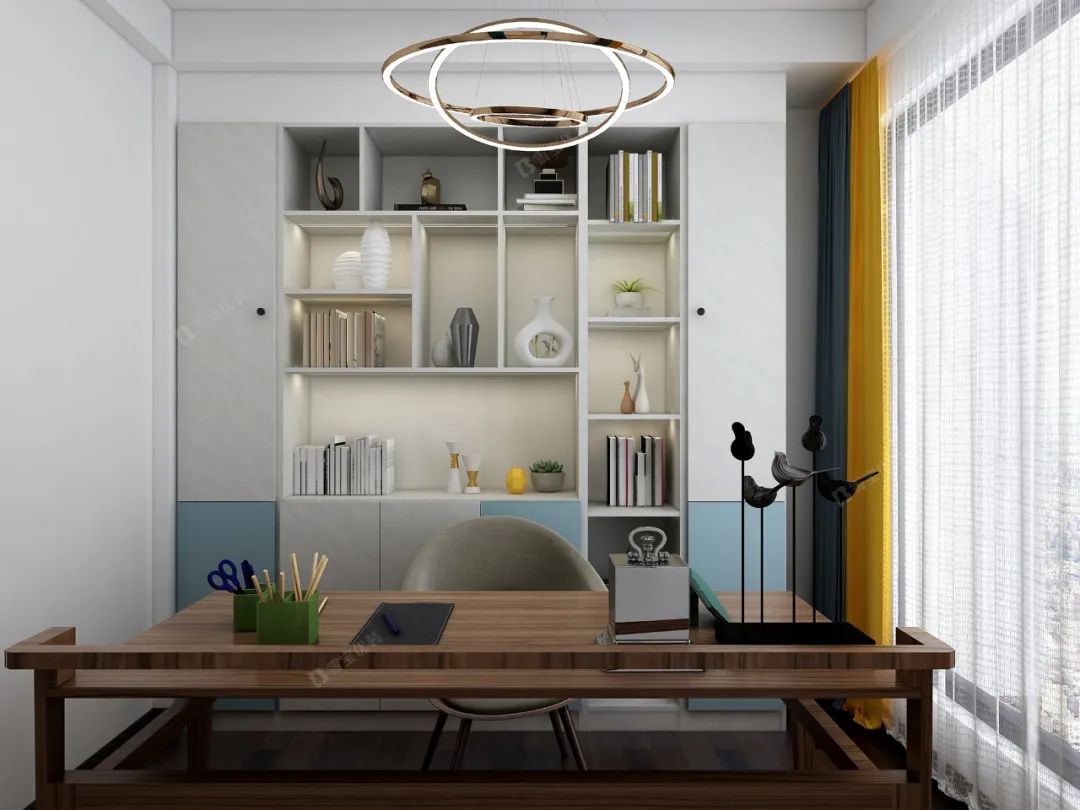 一个科学合理布局的书柜,既可以合理地利用空间,又可以提升整体的视觉美感,很好的调和了书房与书柜的沉闷感。
