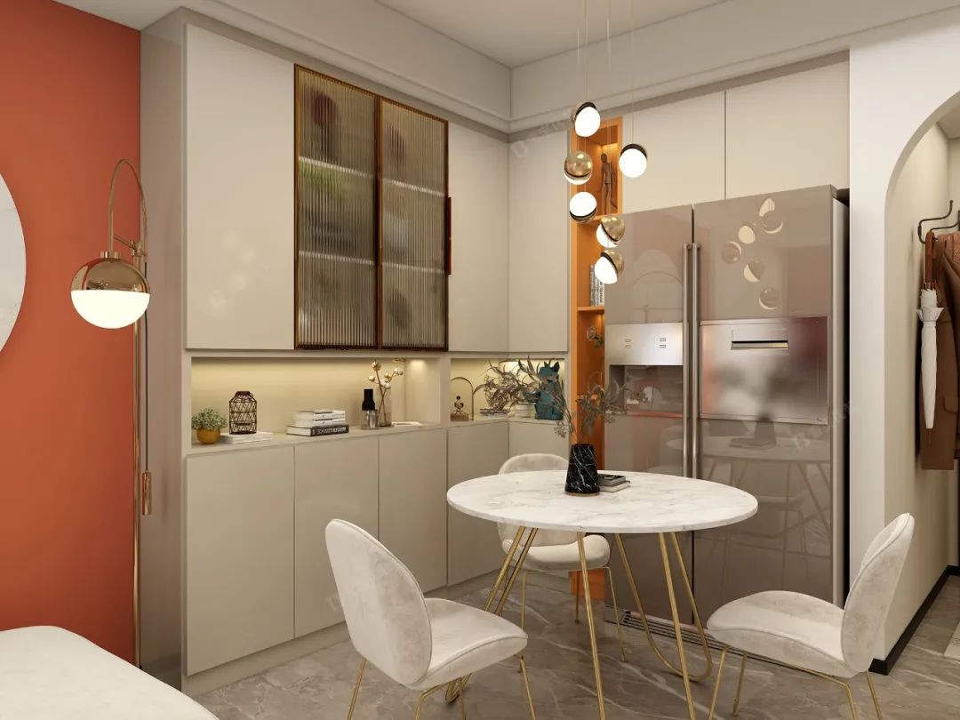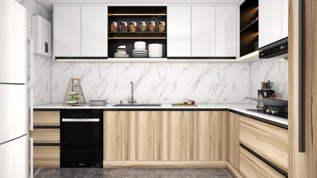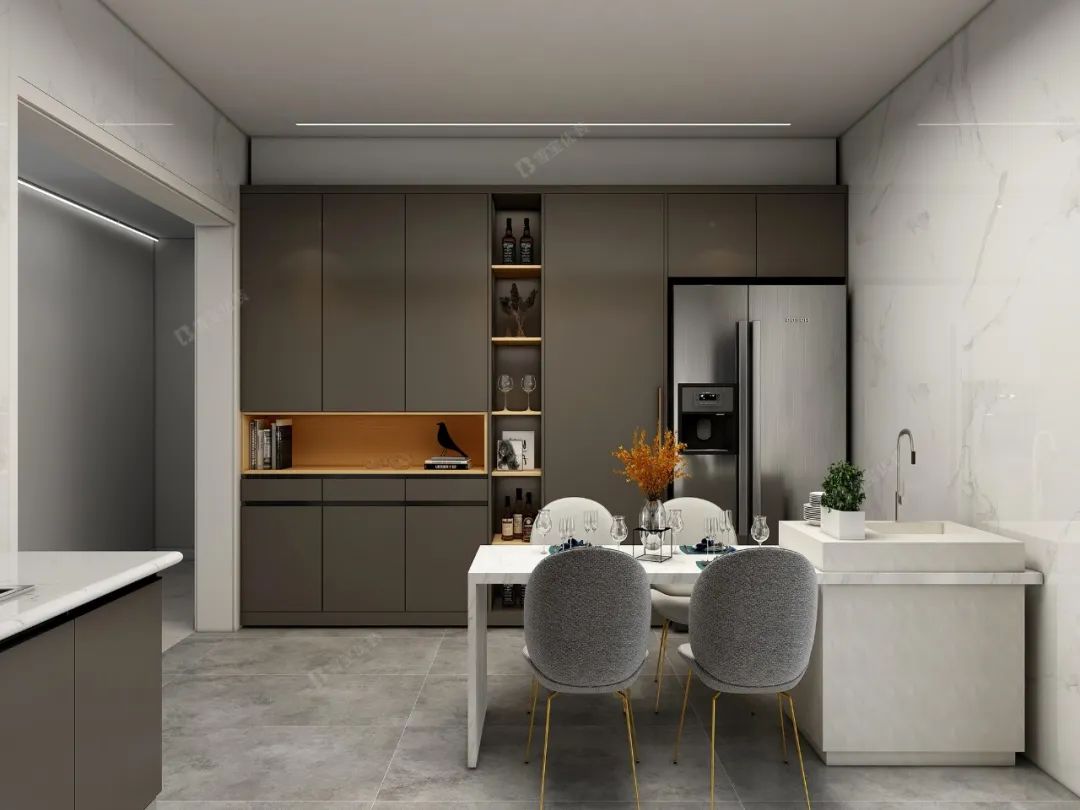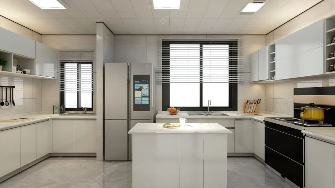 优质环保的材质、柔和温馨的灯光效果搭配简单纯粹的色彩,将厨房打造得精致美好更舒适整洁。