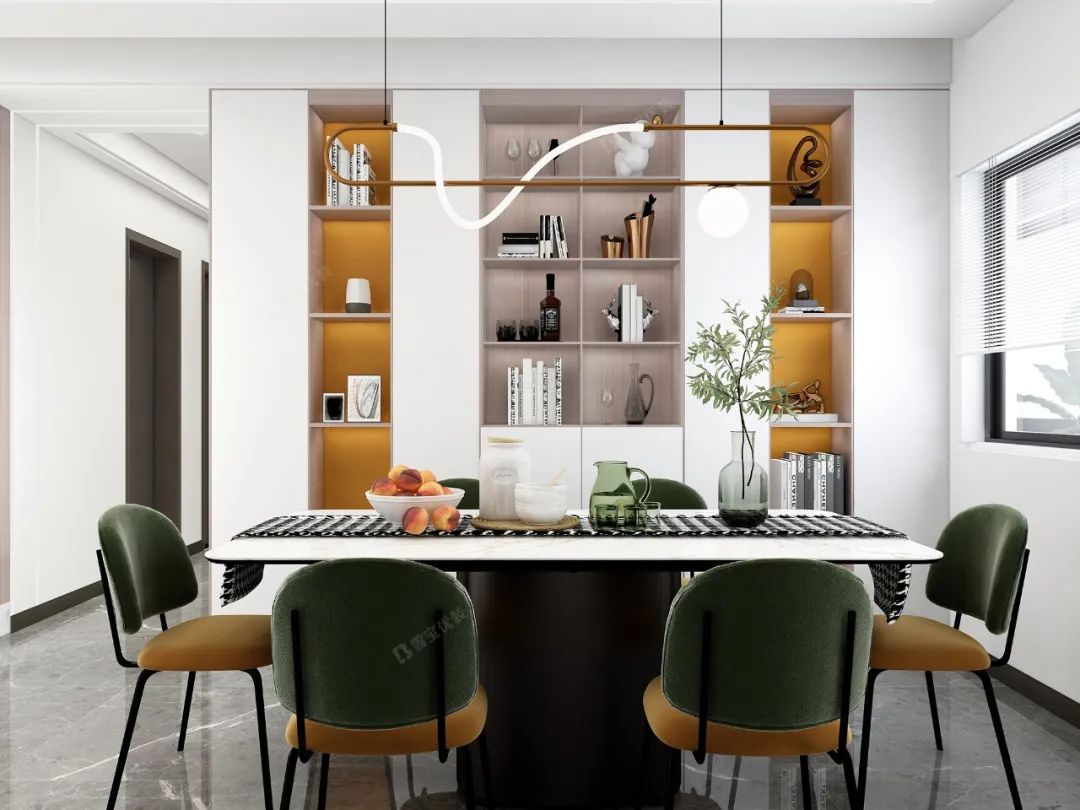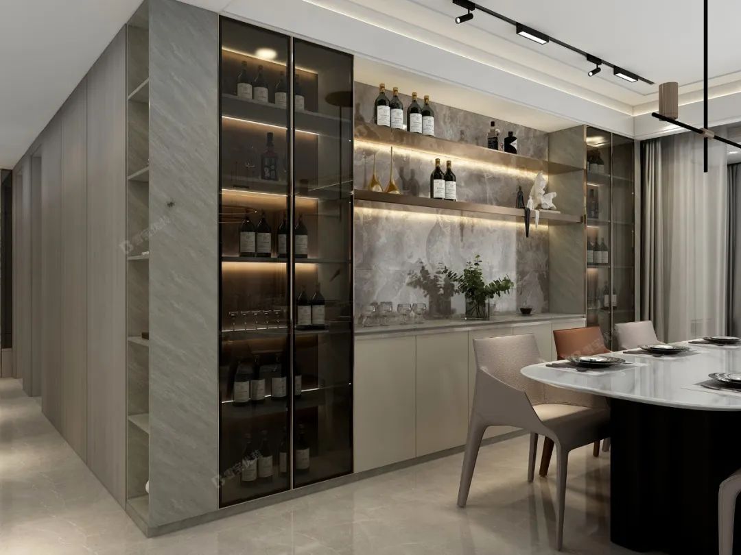 餐边柜内部空间采用不同的大小规格,错落设计,使收纳形式更加丰富。