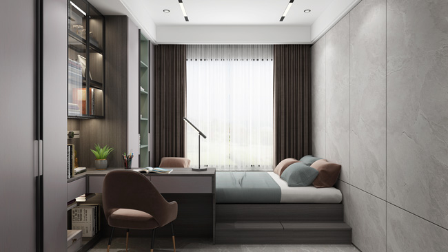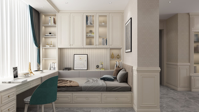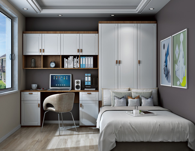 定制类组合家具能根据屋主需求和房屋面积来设计,更加人性化,不浪费空间。小卧室使用定制组合家具能最大限度的利用卧室空间,让各种柜体能充分组合在一起,发挥多重功能。榻榻米柜也是小卧室中的“宠儿”,超大的储物空间,开放式置物架和书桌一个都不少,一组家具全搞定。