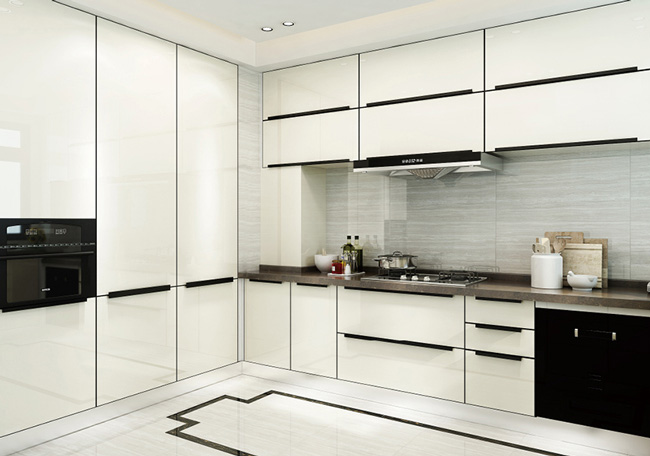 2、一型或L型厨房,可以考虑在空白墙壁上定制窄边柜。当窄边柜空间不足时,可以考虑缩小对面那排橱柜的台面深度。多一排橱柜,要比增加单个橱柜的尺寸更实用。使用高强度的板材会更加使用。