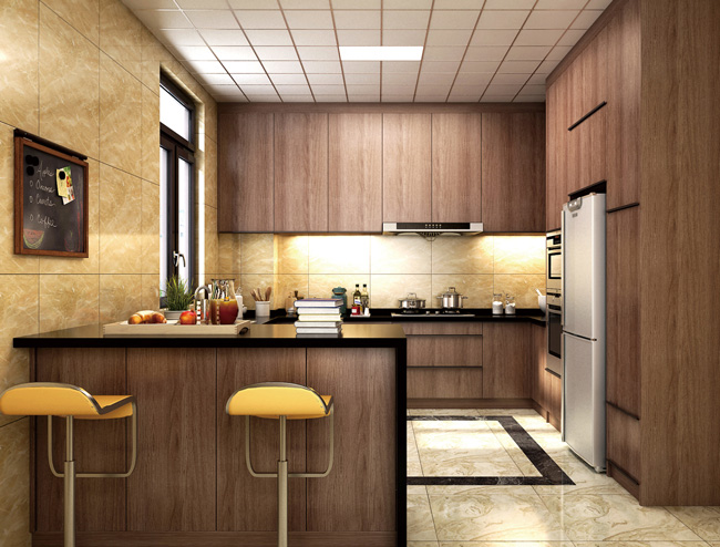 1、正常的通过空间只需要0.9m,超过这个尺寸,证明产生了空间浪费。被浪费的过道空间,可以利用增加台面深度的方法来弥补台面深一寸,柜内就多了一寸空间,兴许就能多放一摞碗、多放一袋米。