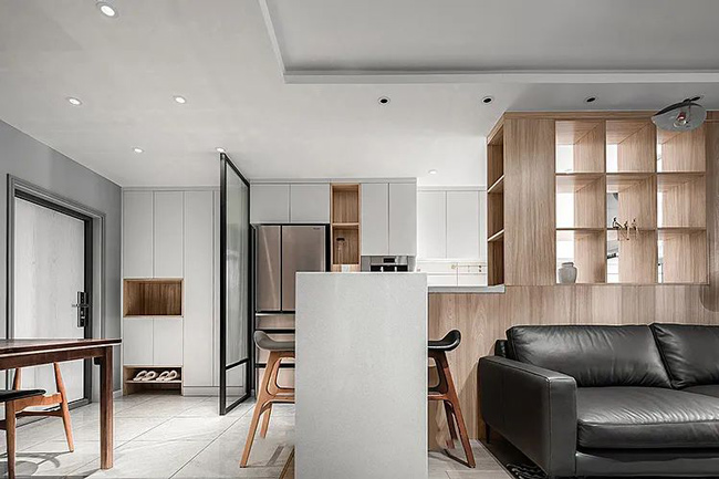 对于小户型的家庭来说,业主都希望客厅尽可能大,这个时候最简单的方式就是敲掉空间多余的墙体。但如果是客餐厅一体化的设计,进门就一眼望穿全部,没有隐私可言。为了保证隐私性就得考虑隔断。