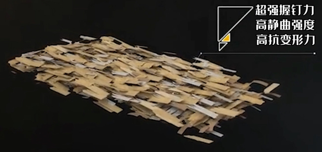 定向刨花板是一种新产品,采用原木树干使用机器切成大小有规律的木片。让后按照纤维方向纵横排列使用环保生态胶经行热压形成为定向刨花板,定向刨花板应为使用的是定向纵横铺装使得做出来的板材具有更高的握钉力、静曲强度、抗变形力。
