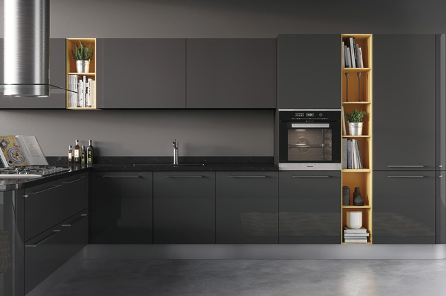 小面积厨房一方面要注意功能完备,还要注意最大限度地提高空间利用率,充分让视觉空间显得宽阔。将众多电器尽量容纳进橱柜里,让台面显得清爽。