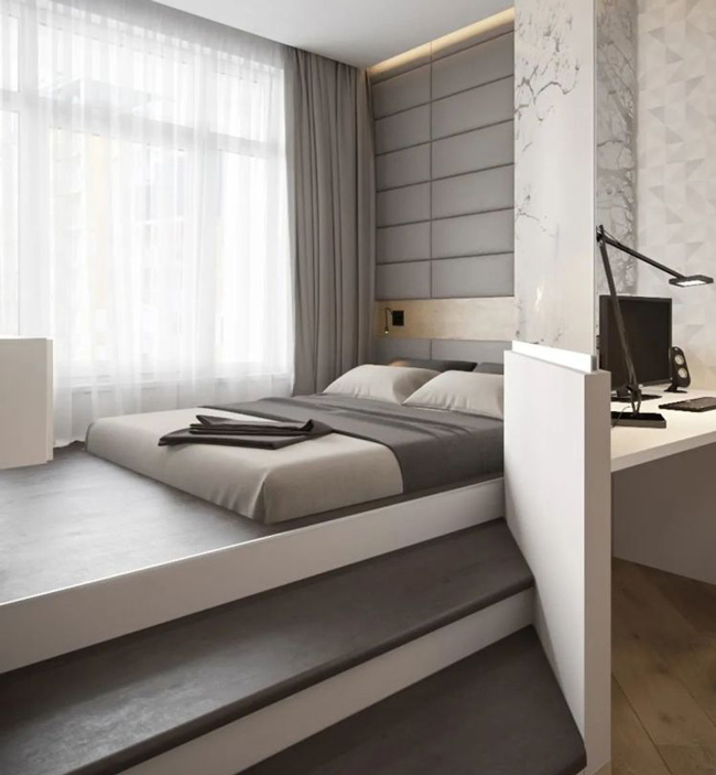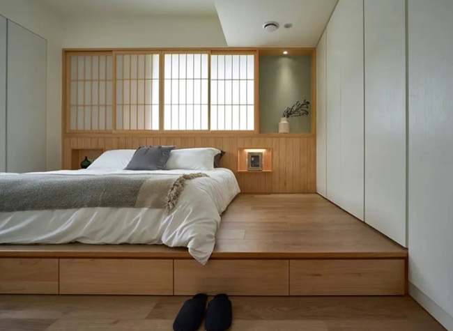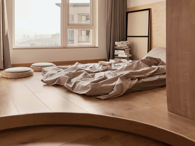 地台床也起到了卧室空间划分的作用,可以把睡眠空间和功能空间进行简易划分,使卧室整体空间划分更明确,满足了现代人追求简约生活的需求。