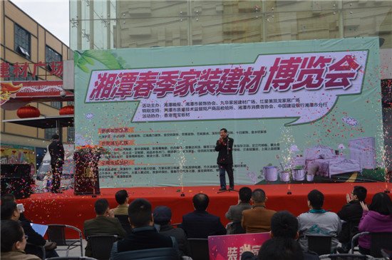 上午9点38分,活动正式开始。作为主办方之一,此次春季家装建材博览会,得到了湘潭日报报社领导的大力支持,湘潭日报社党委书记、社长陈志高为湘潭春季家装博览会致开幕词。