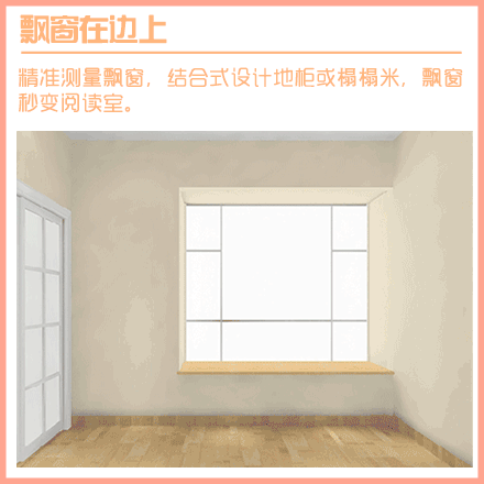 【1、飘窗在边上】精准测量飘窗,结合式设计地柜或榻榻米,飘窗秒变阅读室。