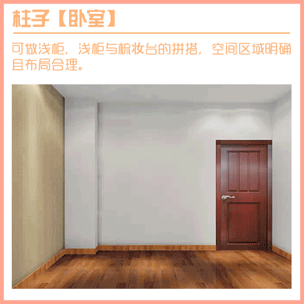 【6、柱子·卧室】可做浅柜,浅柜与梳妆台的拼搭,空间区域明确且布局合理。