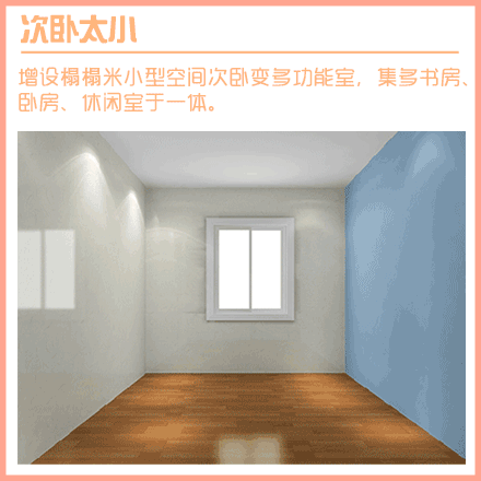 【8、次卧太小】增设榻榻米小型空间次卧变多功能室,集多书房、卧房、休闲室于一体。