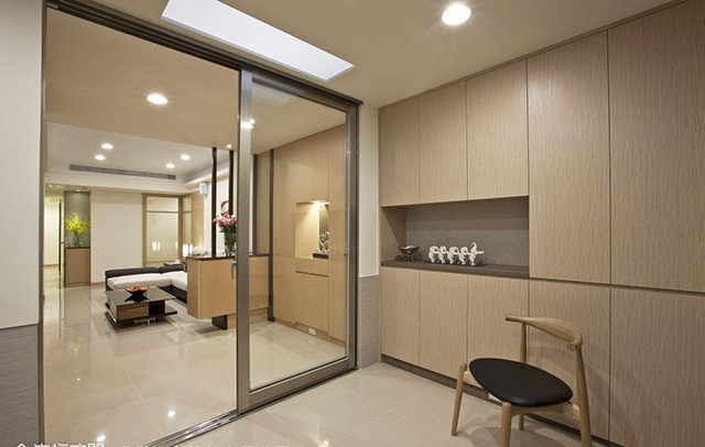 如果您家的入户空间较小,但又要满足收纳需求,入户柜设计就要做到以实用为主,所以一个大的收纳柜加卡座式换鞋凳,就能让您的家看起来美观大方又实用。